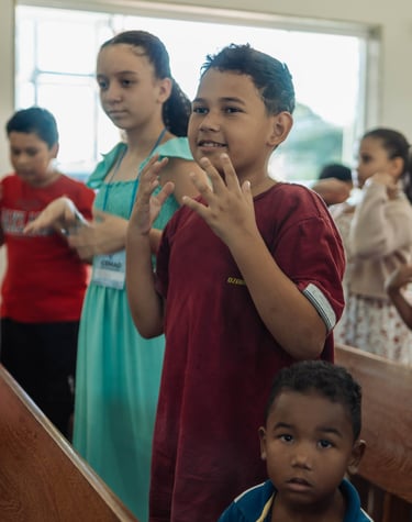 Espaço voltado para crianças, onde dezenas delas são evangelizadas semanalmente, promovendo aprendizado bíblico e atividades lúdicas.